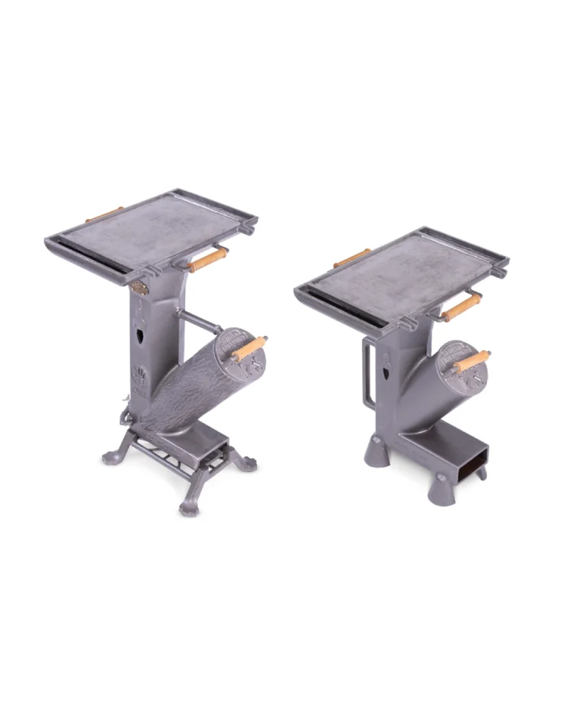 Ta żeliwna patelnia grillowa została zaprojektowana jako kompaktowa płyta żeliwna na grilla do codziennego smażenia i grillowania na świeżym powietrzu. Nakłada się ją bezpośrednio na komin piecyka rakietowego, dlatego szybko zamienia piecyk w wygodne stanowisko do przygotowywania mięsa, warzyw, pieczywa, jajek, burgerów i innych potraw wymagających pełnej, stabilnej powierzchni.