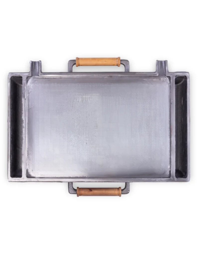 Żeliwna patelnia grillowa z gładką powierzchnią to kompaktowa płyta żeliwna na grilla do smażenia i grillowania na piecyku rakietowym. Nakłada się ją bezpośrednio na komin modeli KING i DUKE, dzięki czemu tworzy wygodną powierzchnię do przygotowywania mięsa, warzyw, śniadań i innych potraw na żywym ogniu.