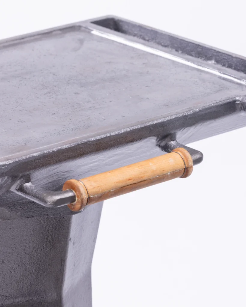 Całość jest wykonana masywnego odlewu żeliwnego, odpornego na wysoką temperaturę i intensywne, wieloletnie użytkowanie. Zastosowanie pełnego odlewu zamiast konstrukcji spawanej przekłada się na wysoką wytrzymałość, stabilność oraz charakter produktu z najwyższej półki.
