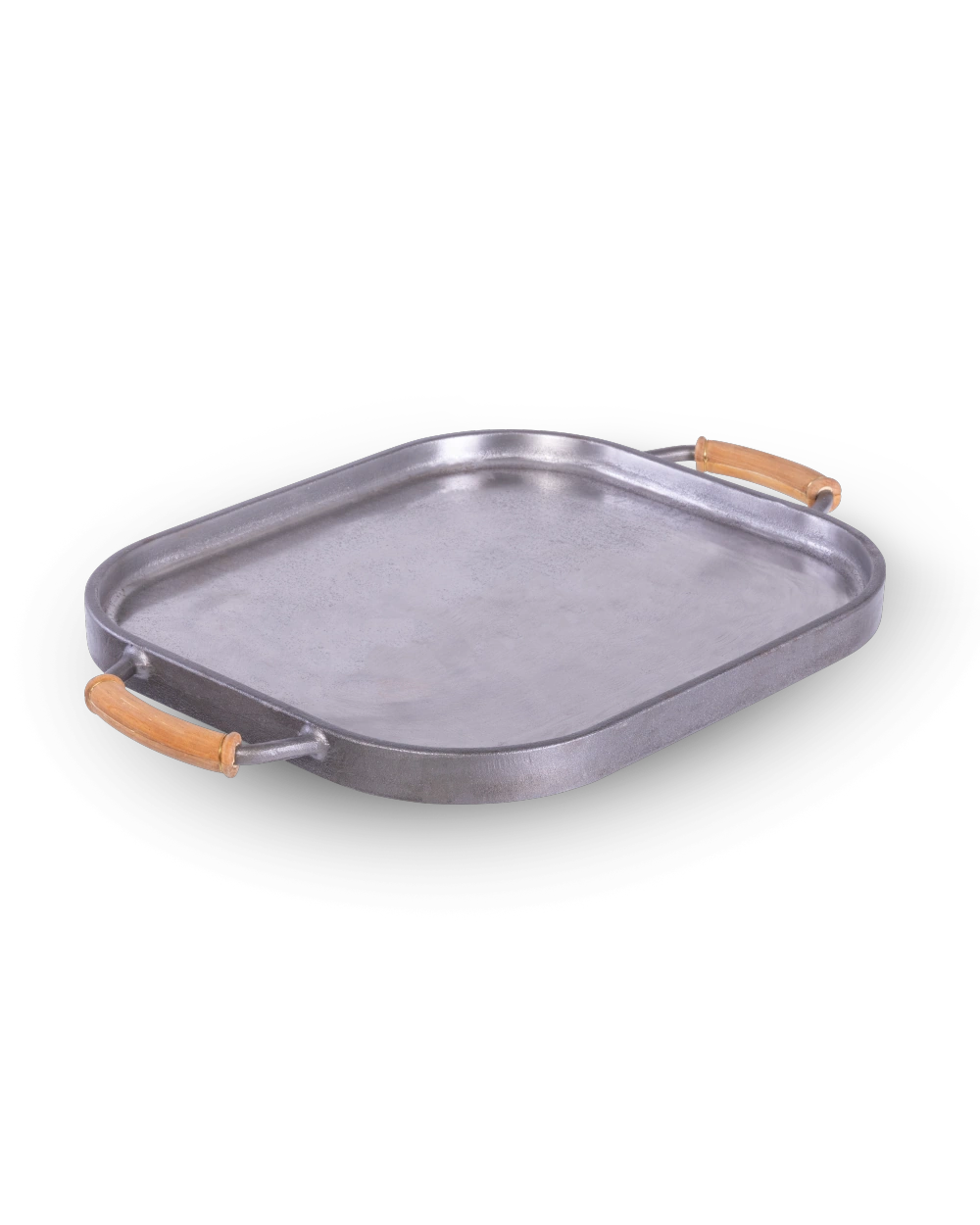 Duża gładka patelnia żeliwna rozszerza możliwości zestawu o wygodną powierzchnię do smażenia na żywym ogniu. Pozwala przygotowywać większe porcje jedzenia jednocześnie, dlatego dobrze sprawdza się podczas wspólnego gotowania w ogrodzie, na działce albo przy spotkaniach na świeżym powietrzu.