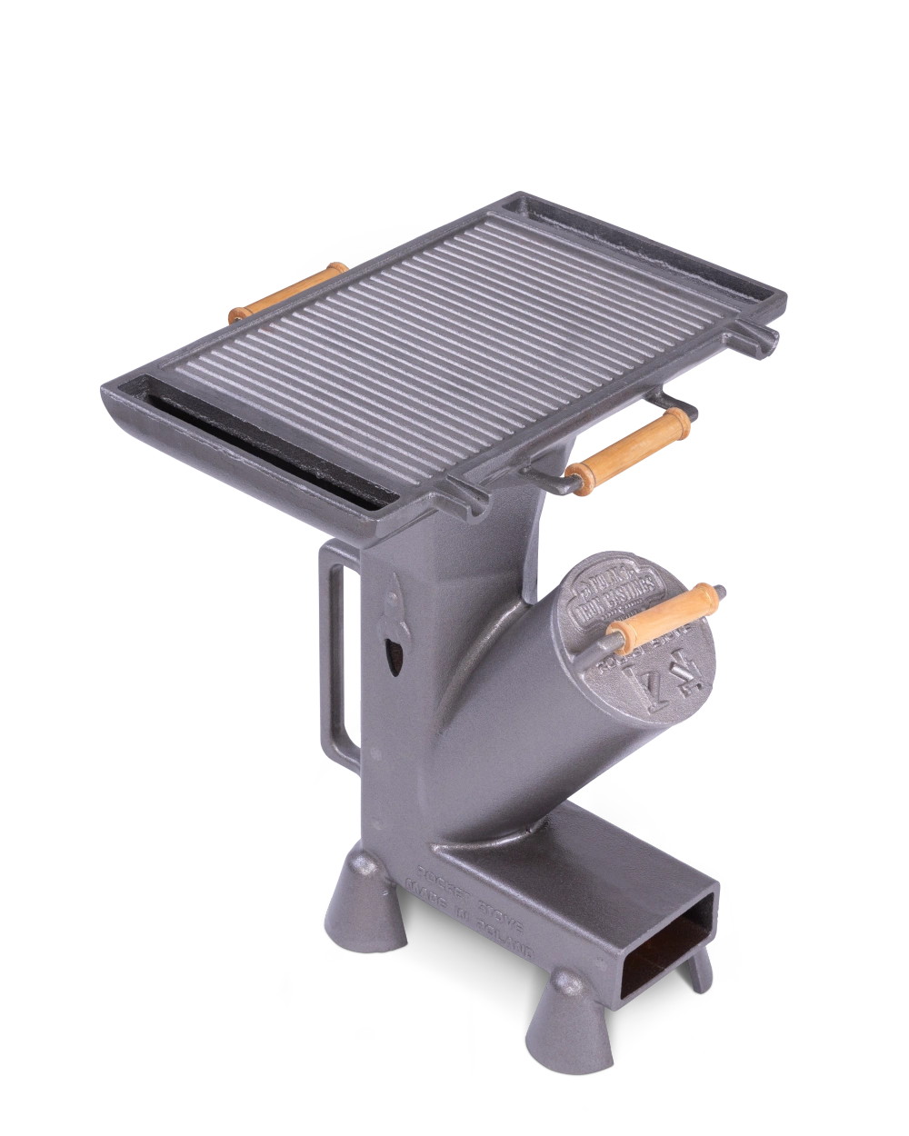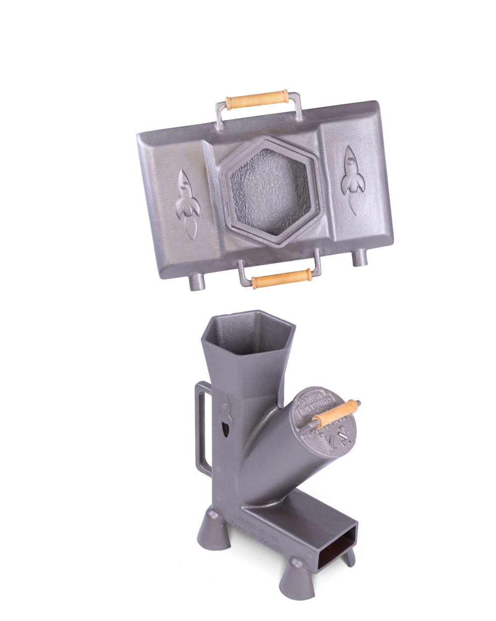 Piecyk rakietowy DUKE stanowi podstawę całego zestawu i odpowiada za wydajne spalanie drewna oraz wytwarzanie intensywnego ciepła potrzebnego do gotowania i smażenia na żywym ogniu. Masywna żeliwna konstrukcja dobrze akumuluje temperaturę, a bardziej kompaktowa forma sprawia, że ten mały piecyk rakietowy dobrze sprawdza się jako rozwiązanie do regularnego użytkowania na zewnątrz.
