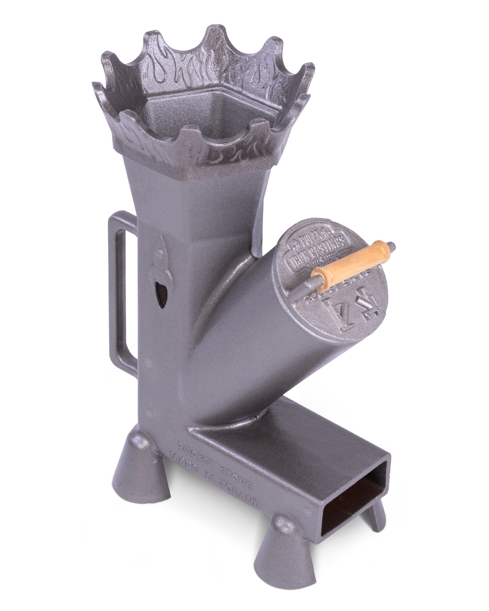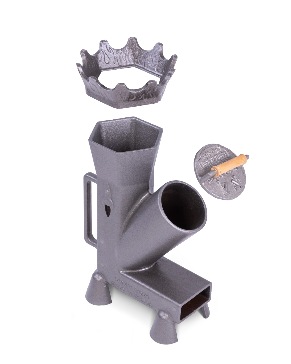 Piecyk rakietowy DUKE stanowi podstawę całego zestawu i odpowiada za wydajne spalanie drewna oraz wytwarzanie intensywnego ciepła potrzebnego do gotowania i smażenia na żywym ogniu. Masywna żeliwna konstrukcja dobrze akumuluje temperaturę, a bardziej kompaktowa forma sprawia, że ten mały piecyk rakietowy dobrze sprawdza się jako rozwiązanie do regularnego użytkowania na zewnątrz.