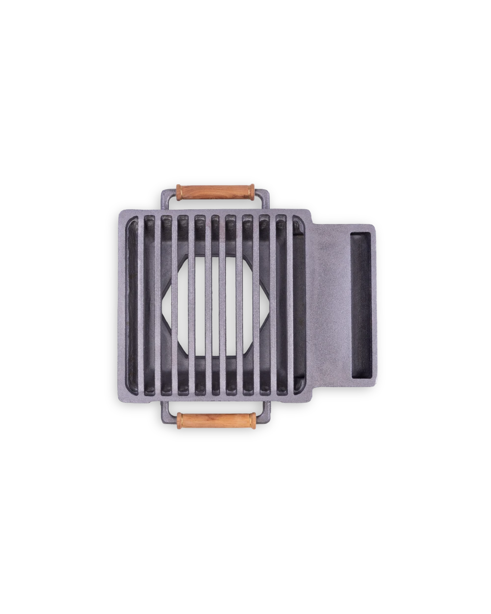 Dzięki kompaktowej formie ruszt może być używany jako podstawowe narzędzie do prostych potraw albo jako jedno z kilku akcesoriów do piecyka rakietowego, zależnie od tego, co chcesz przygotować. W ten sposób tworzy wygodny grill z rusztem żeliwnym do szybkiego użycia w ogrodzie, na działce albo przy domu letniskowym