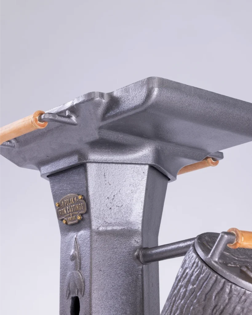 Produkt został zaprojektowany i odlany w Polsce z zachowaniem rzemieślniczej precyzji wykonania. Każdy egzemplarz stanowi pełnowartościowy odlew żeliwny, a nie konstrukcję spawaną z elementów stalowych, co przekłada się na wysoką trwałość oraz charakterystyczną estetykę surowego żeliwa. To dopracowany produkt tworzony z myślą o wymagającym użytkowniku, który oczekuje trwałości, jakości wykonania i autentycznego materiału.